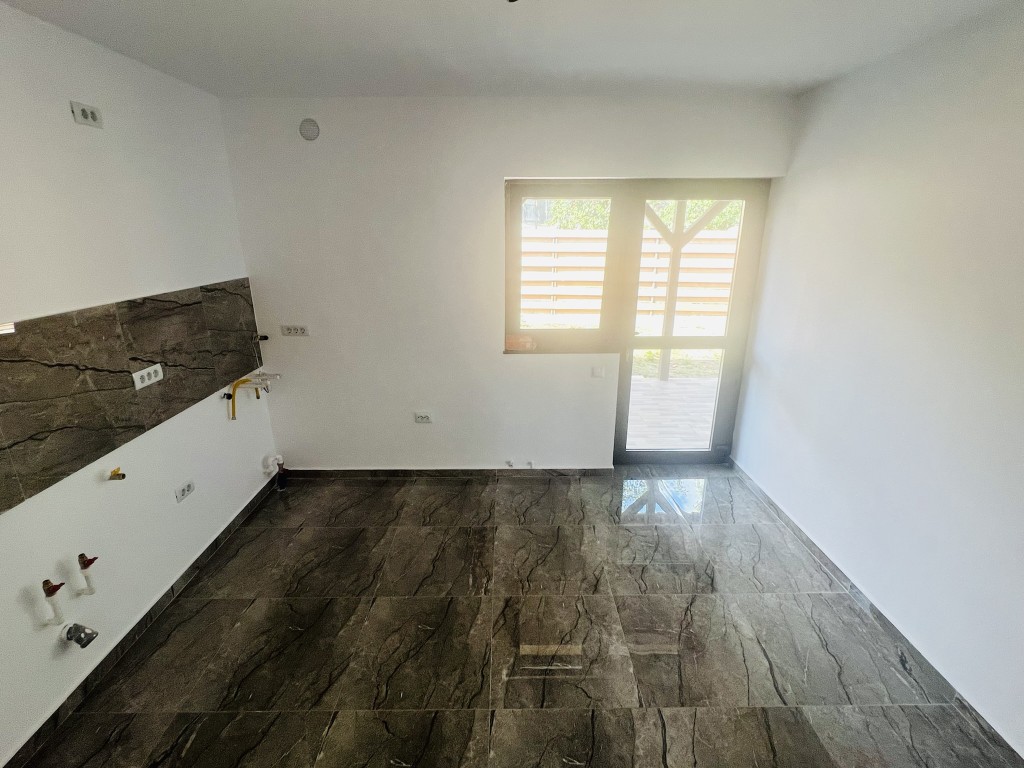 Parter: living, bucatarie cu iesire pe terasa, 2 dormitoare, hol, baie