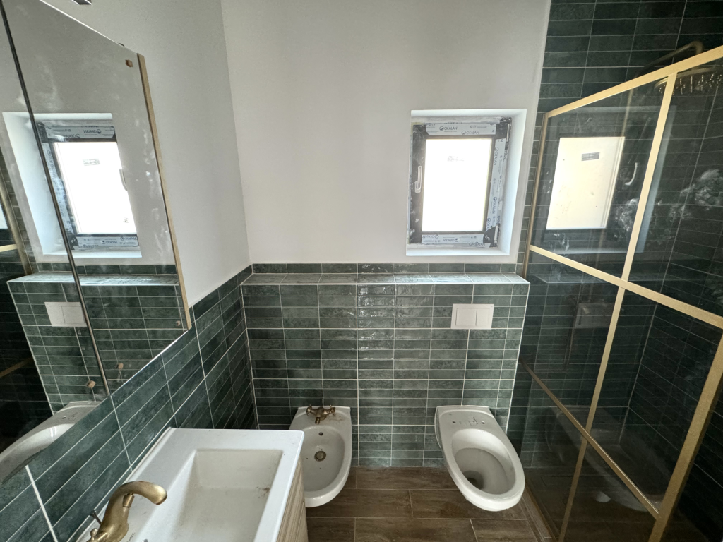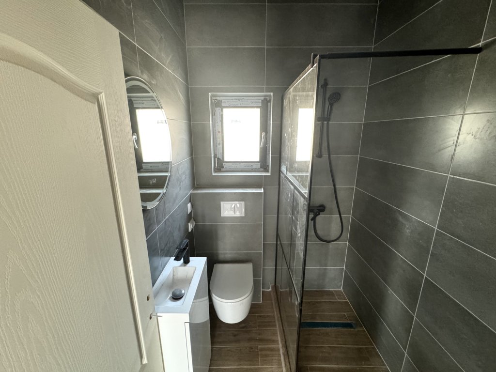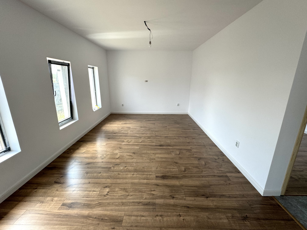 Parter: living, bucatarie cu iesire pe terasa, 2 dormitoare, 2 bai, hol
