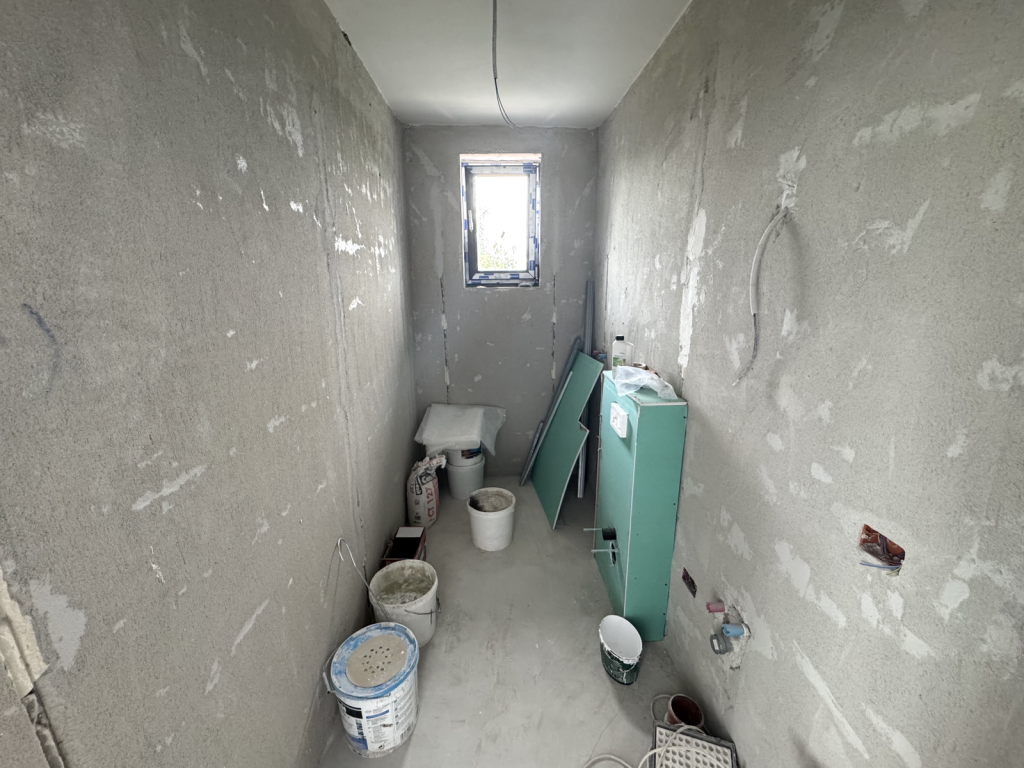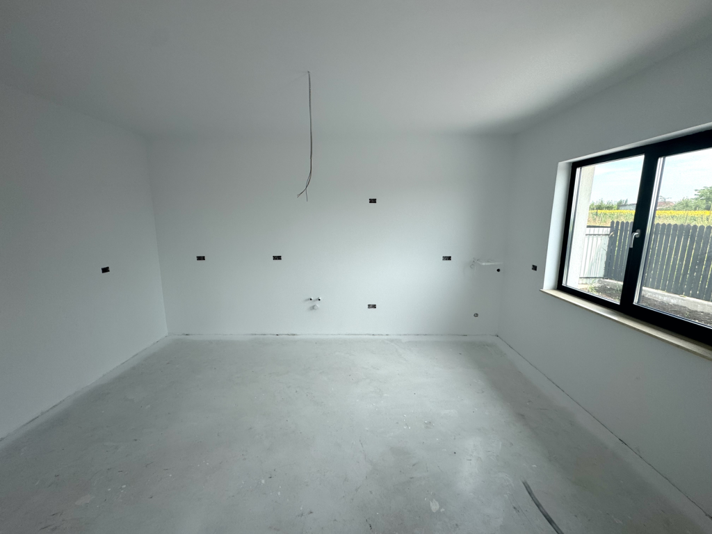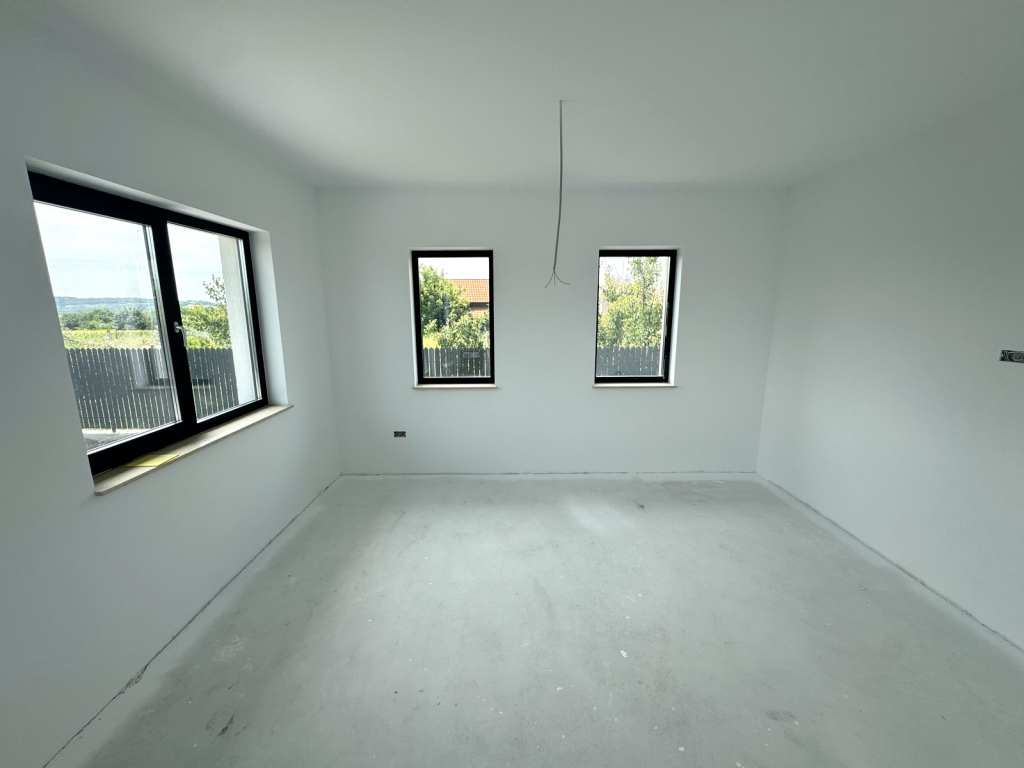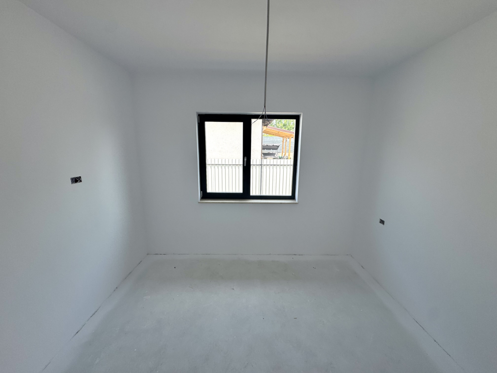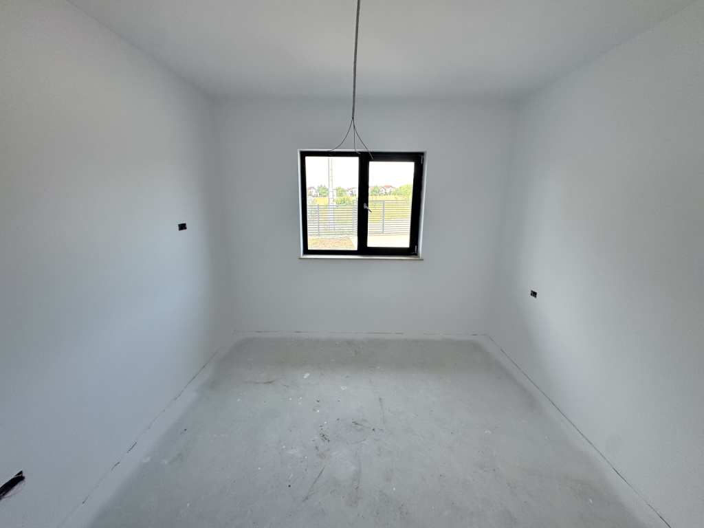 Parter: living, bucatarie, 3 dormitoare (dintre care cel matrimonial cu baie proprie), 2 bai, hol
