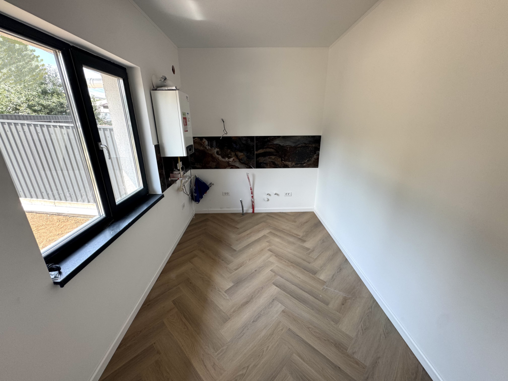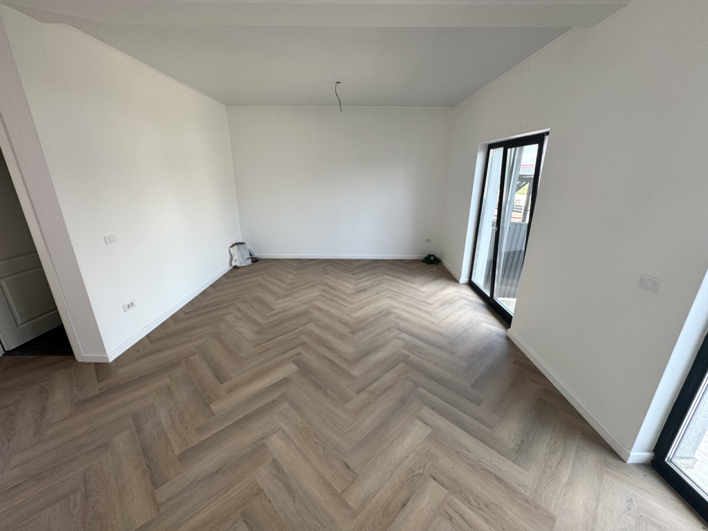 Parter: living cu iesire pe terasa, bucatarie, hol, baie