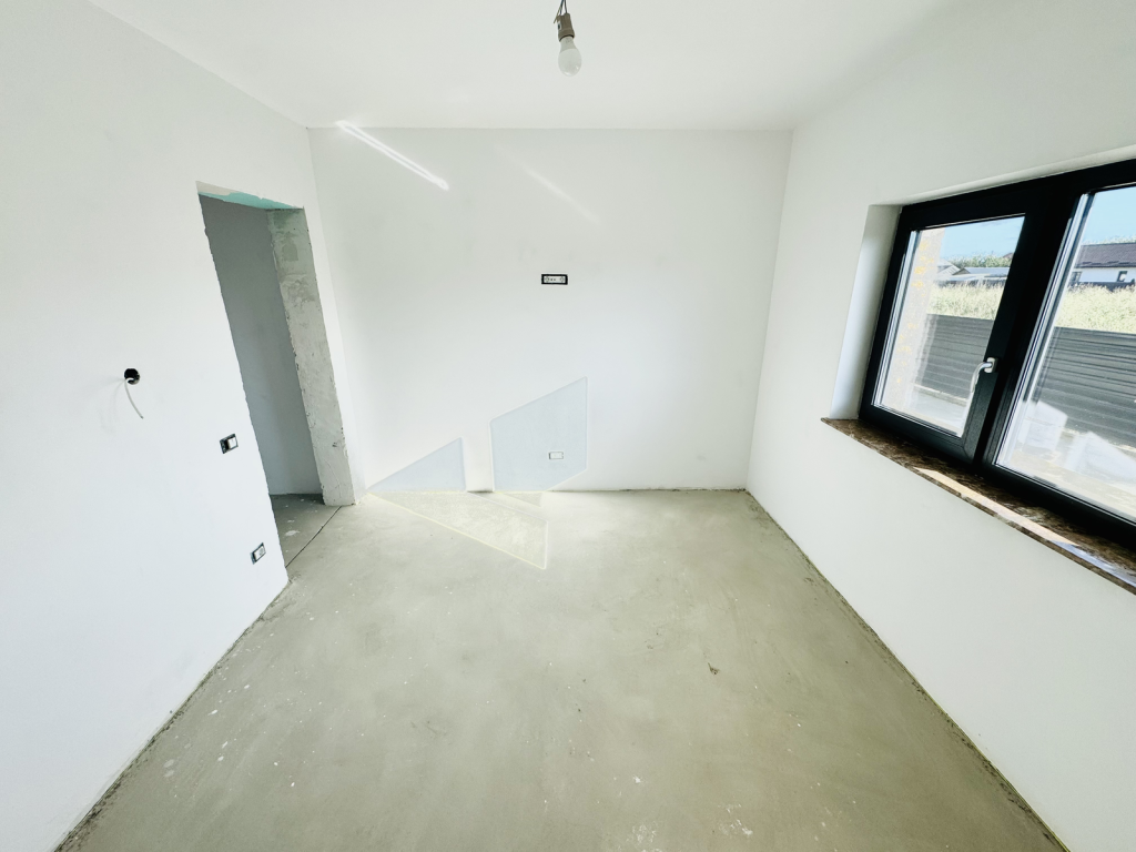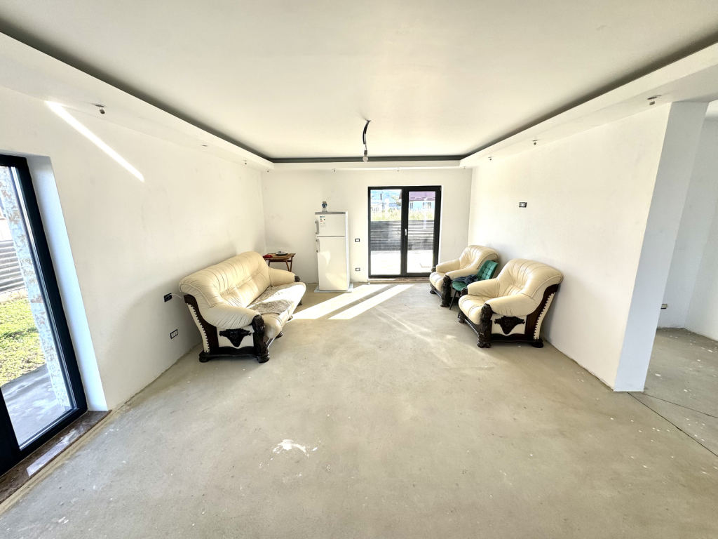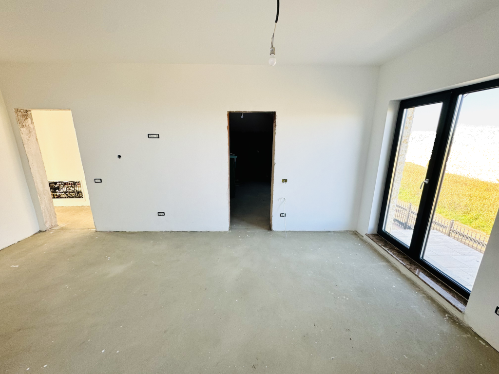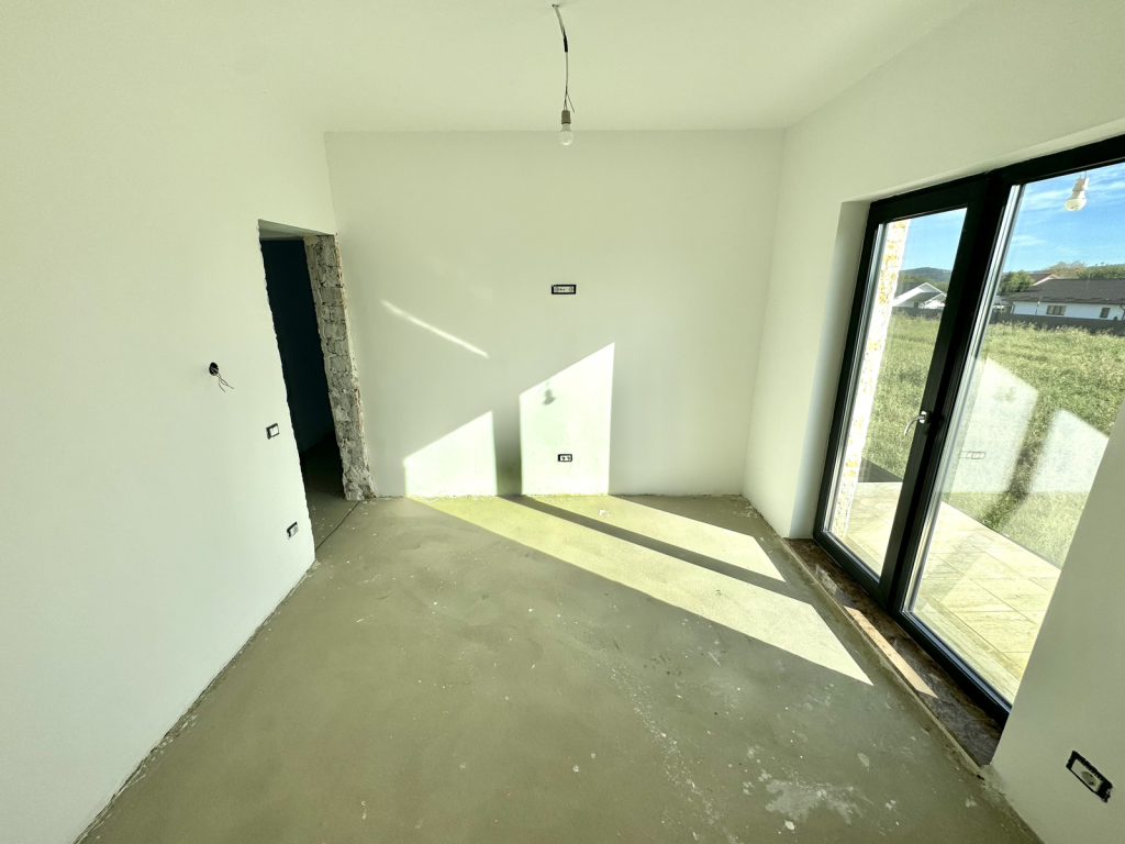 Parter: vestibul, living cu iesire pe terasa, bucatarie, dormitor, hol, baie