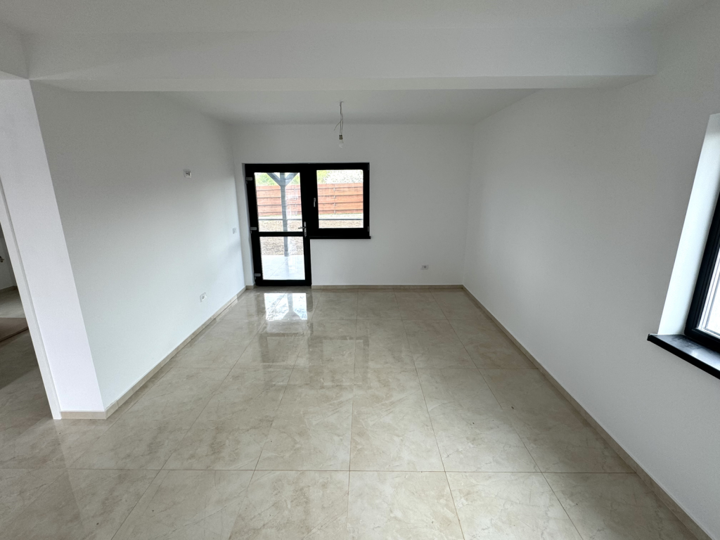 Parter: antreu, living cu iesire pe terasa, bucatarie cu iesire pe terasa, dormitor/birou, hol, baie